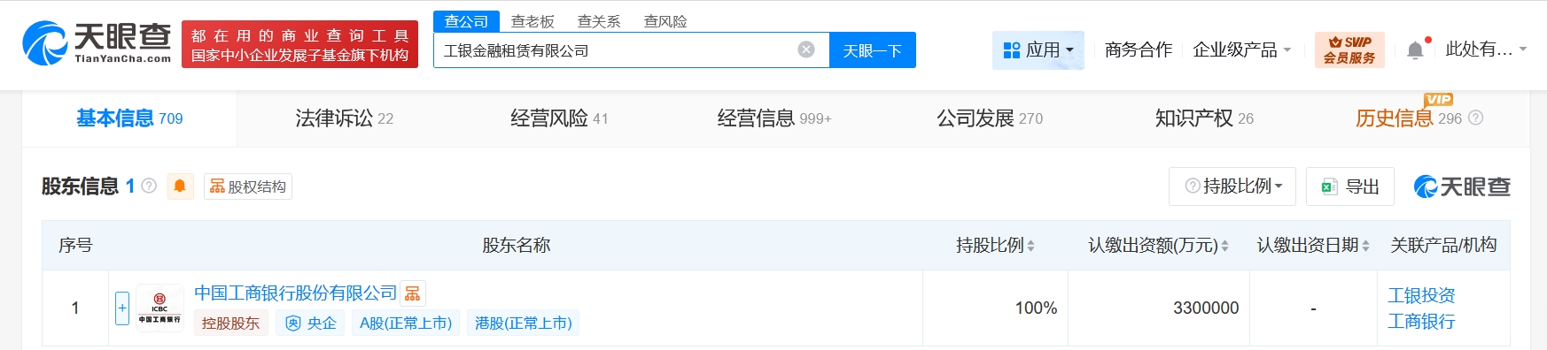 该公司成立于2007年11月,法定代表人为张正华,经营范围含融资租赁业务、转让和受让融资租赁资产、固定收益类证券投资业务、接受承租人的租赁保证金、同业拆借、向金融机构借款、境外借款、租赁物变卖及处理业务等。股东信息显示,该公司由工商银行(601398)全资持股。