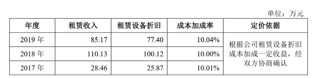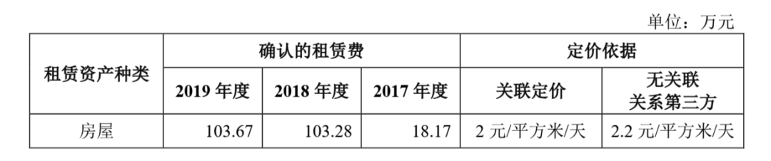 值得一提的是,在先为达成立之初,因办公及研发需求,还曾向凯因科技租赁相关场地及设备用于研发及办公。2017年-2019年,各期产生的房屋租赁费分别为18.17万元、103.28万元、103.67万元,各期产生的设备租赁费分别为28.46万元、110.13万元、85.17万元。