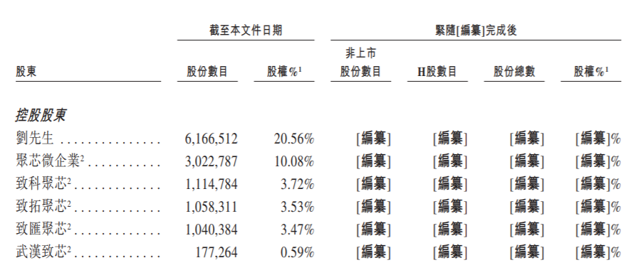 此外,刘德珩是股份激励平台聚芯微企业、致汇聚芯、致科聚芯、致拓聚芯及武汉致芯(统称“股份激励平台”)的普通合伙人,股份激励平台合共持有股份总数的21.38%。因此,刘德珩合计控制41.94%股权。