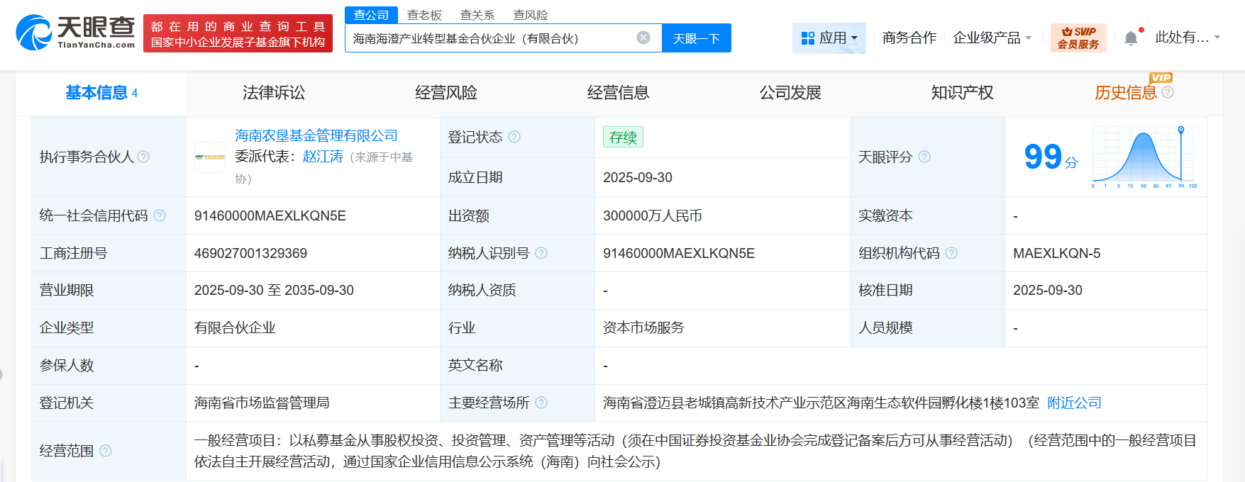 雷达财经讯,天眼查App显示,近日,海南海澄产业转型基金合伙企业(有限合伙)成立,执行事务合伙人为海南农垦基金管理有限公司,出资额30亿人民币,经营范围为以私募基金从事股权投资、投资管理、资产管理等活动。合伙人信息显示,该基金由海南海澄投资有限公司、海南农垦基金管理有限公司共同持股。