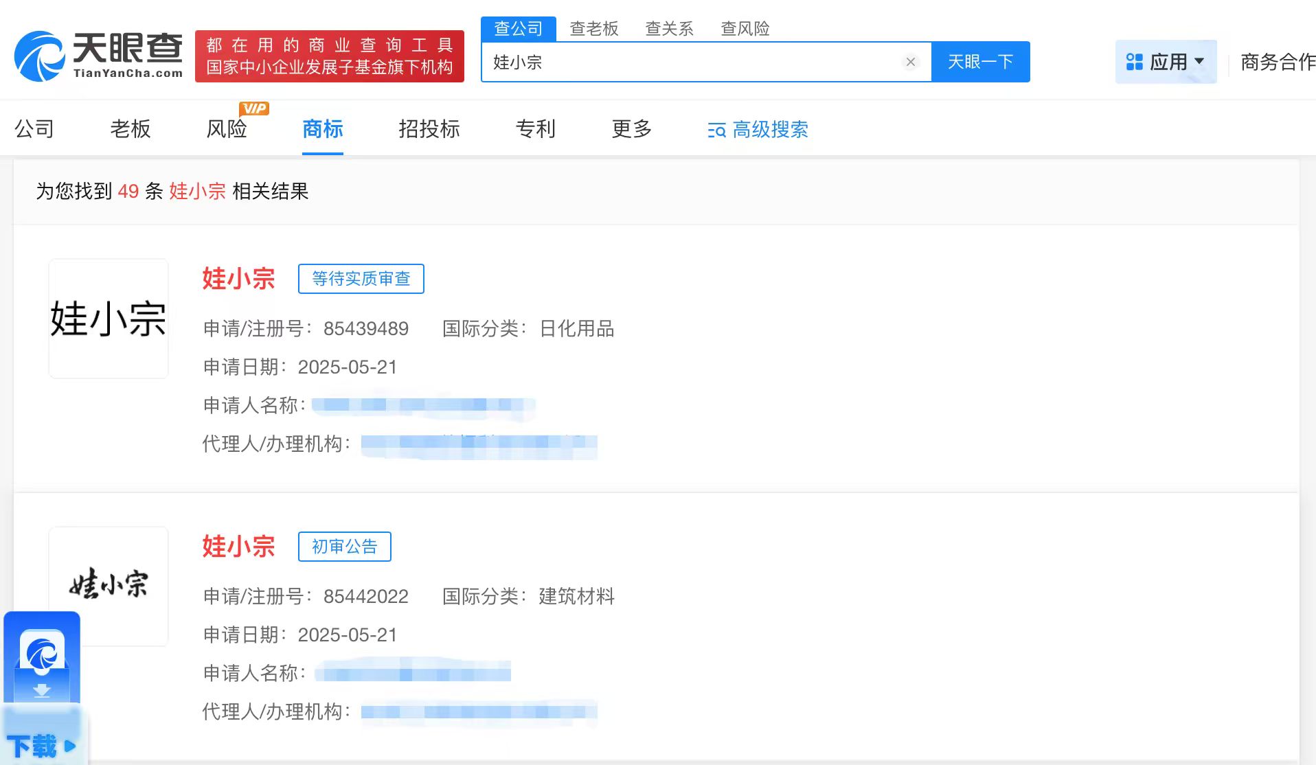 值得注意的是,河南某健康产业公司、新吴某电子商务公司、九江某科技公司等均已申请注册“娃小宗”商标,当前商标状态为等待实质审查。