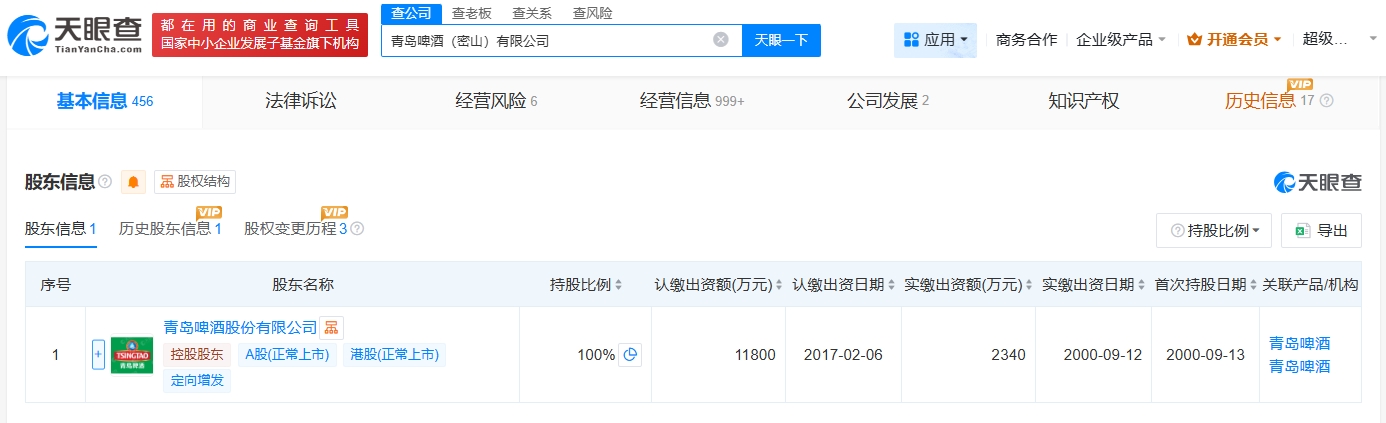 该公司成立于2000年9月,法定代表人为李志林,注册资本1.18亿人民币,经营范围包括啤酒制造、啤酒批发零售。股东信息显示,该公司由青岛啤酒(600600)全资持股。