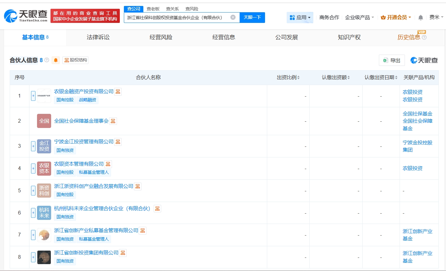 雷达财经讯,天眼查工商信息显示,近日,浙江省社保科创股权投资基金合伙企业(有限合伙)成立,执行事务合伙人为那力嘉、郑钧,出资额500亿人民币,经营范围为以私募基金从事股权投资、投资管理、资产管理等活动,股权投资,创业投资。合伙人信息显示,该基金由农银金融资产投资有限公司、全国社会保障基金理事会、农银资本管理有限公司等共同出资。
