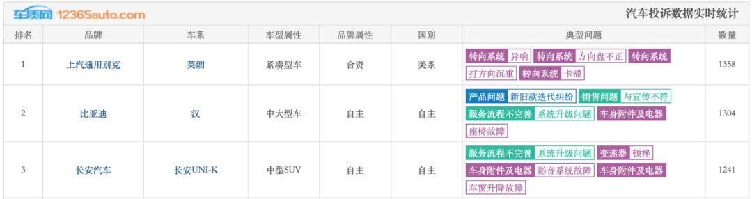 其中,最近一年,比亚迪汉的投诉量多达1304条,典型问题包括新旧款迭代纠纷、座椅故障、销售与宣传不符等。