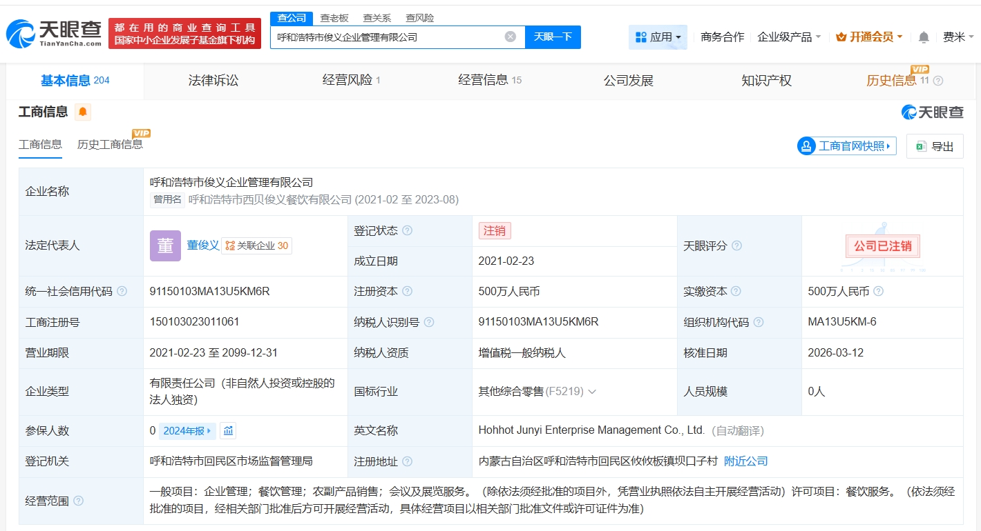 雷达财经讯,3月14日,网红“鹿哈”凌达乐带货的膳小丫贡菜千层肚被曝加工环境恶劣。 天眼查App显示,膳小丫加工公司四川川牛福食品有限公司成立于2023年4月,法定代表人为邓南龙,注册资本100万人民币,经营范围包括食品生产、食品销售、动物肠衣加工等。股东信息显示,该公司由邓南龙全资持股。变更记录显示,2025年12月,该公司法定代表人、高级管理人员、投资人曾发生变更。