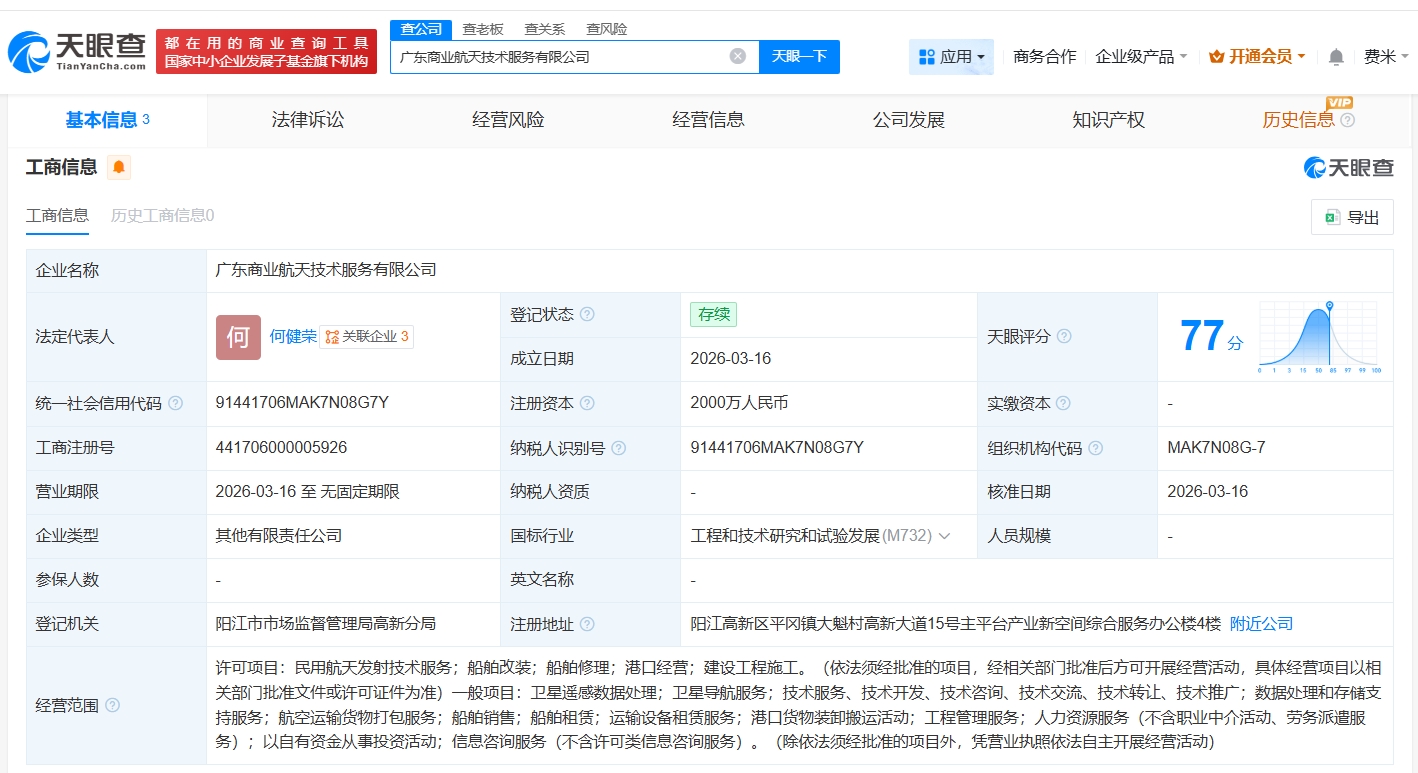 雷达财经 文|杨洋 编|李亦辉 3月16日,中信海直(000099)发布2025年年度报告摘要,报告期实现营业收入22.35亿元,同比增长3.33%,归属上市公司股东的净利润3.09亿元,同比增长1.79%,扣除非经常性损益后的归属于上市公司股东的净利润2.84亿元,同比减少5.83%,基本每股收益0.40元,同比增长2.56%。 天眼查资料显示,中信海直成立于1999年02月11日,注册资本77577.0137万人民币,法定代表人张坚,注册地址为深圳市罗湖区清水河街道清水河社区清水河一路112号罗湖投资控股大厦塔楼2座901。主营业务为通用航空服务,提供劳务为直升机海上油气飞行服务、应急救援、港口引航、陆上通航和通航维修等。 目前,公司董事长为张坚,董秘为欧阳铭志,员工人数为1094人,实际控制人为中国中信集团有限公司。 公司参股公司8家,包括中信海直航空科技有限责任公司、中信海直(青岛)通用航空有限责任公司、海直通用航空有限责任公司、中信海直航空发展有限责任公司、华夏九州通用航空有限公司等。 在业绩方面,公司2023年、2024年和2025年营业收入分别为19.70亿元、21.63亿元和22.35亿元,同比分别增长9.54%、9.83%和3.33%。归母净利润分别为2.39亿元、3.03亿元和3.09亿元,归母净利润同比增长分别为23.11%、26.81%和1.79%。同期,公司资产负债率分别为16.98%、23.14%和27.70%。 在风险方面,天眼查信息显示,公司自身天眼风险13条,周边天眼风险22条,历史天眼风险27条,预警提醒天眼风险145条。