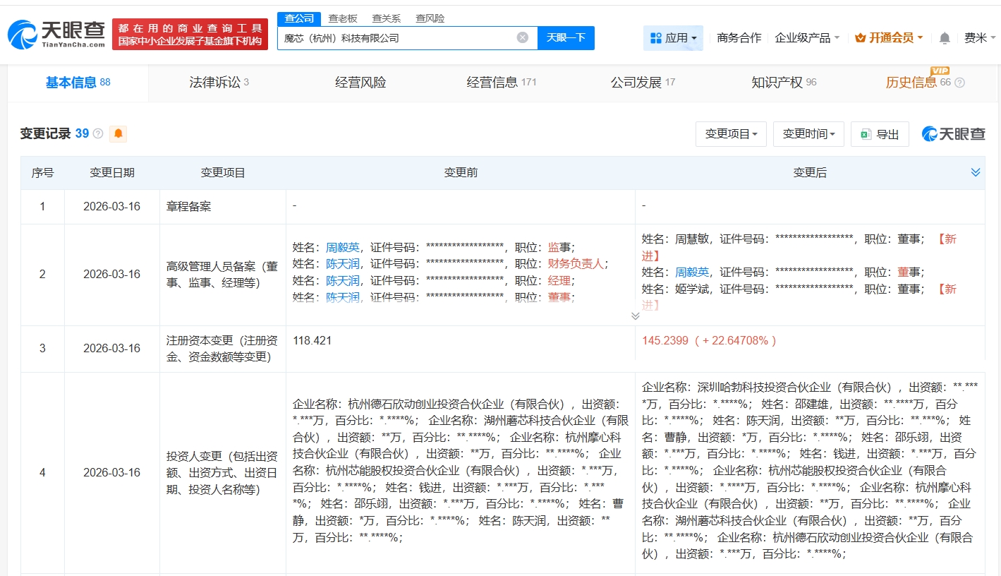 雷达财经讯,天眼查工商信息显示,近日,宁德时代(上海)智能科技有限公司发生工商变更,新增博裕新智新产(宁波)股权投资合伙企业(有限合伙)、北京顺义汽车产业创业投资基金(有限合伙)等为股东,同时,注册资本由约28.3亿人民币增至约30.6亿人民币。 宁德时代(上海)智能科技有限公司成立于2021年7月,法定代表人为杨汉兵,注册资本约30.6亿人民币,经营范围包括技术服务、技术开发、技术咨询、技术交流、技术转让、技术推广,汽车零部件研发,电池制造等。股东信息显示,该公司由宁德时代(300750)、宁波梅山保税港区宁创致远创业投资合伙企业(有限合伙)及上述新增股东等共同持股。