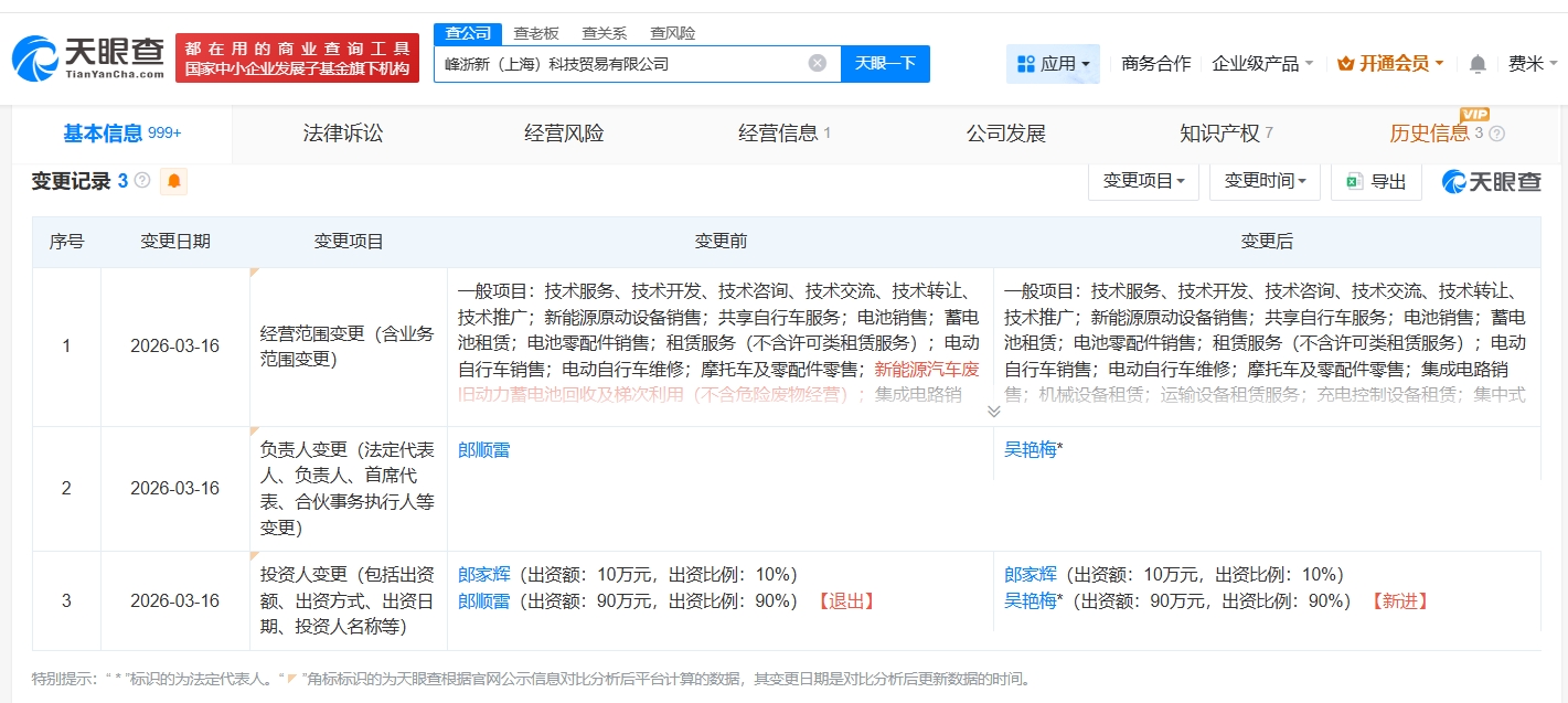 雷达财经讯,天眼查工商信息显示,近日,成都凌祺汽车销售服务有限公司成立,法定代表人为肖强,注册资本200万人民币,经营范围包括汽车销售、新能源汽车整车销售、汽车零配件零售、充电桩销售、机动车修理和维护等。股东信息显示,该公司由零跑汽车(09863.HK)旗下凌跑汽车商贸有限公司全资持股。