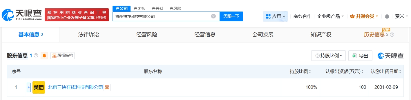 雷达财经讯,天眼查工商信息显示,近日,金华乐鲜科技有限公司成立,法定代表人为高雨龙,注册资本500万人民币,经营范围含票务代理服务、汽车装饰用品销售、消防器材销售等。股东信息显示,该公司由美团旗下浙江乐鲜科技有限公司全资持股。