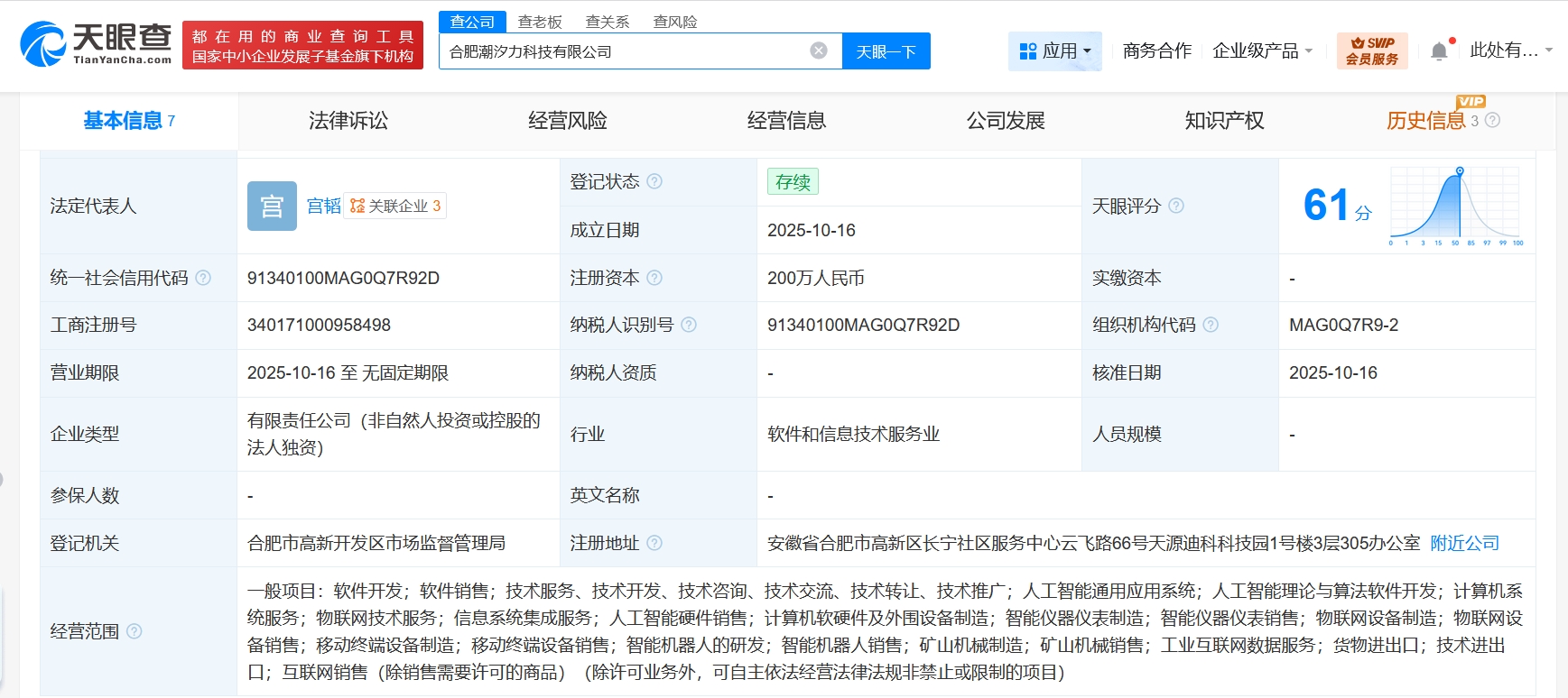 雷达财经讯,天眼查工商信息显示,近日,合肥潮汐力科技有限公司成立,法定代表人为宫韬,注册资本200万人民币,经营范围含人工智能通用应用系统、人工智能理论与算法软件开发、计算机系统服务、物联网技术服务、信息系统集成服务、人工智能硬件销售、计算机软硬件及外围设备制造、智能仪器仪表制造等。股东信息显示,该公司由科大讯飞旗下浙江潮汐力科技有限公司全资持股。