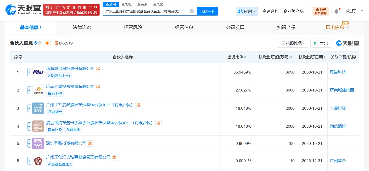 雷达财经讯,天眼查工商信息显示,近日,广州工创绿科产业投资基金合伙企业(有限合伙)成立,执行事务合伙人为广州工创汇吉私募基金管理有限公司,出资额1.11亿人民币,经营范围为以自有资金从事投资活动,以私募基金从事股权投资、投资管理、资产管理等活动。合伙人信息显示,该基金由派诺科技(920375)、济南西城投资发展有限公司、广州工控混改股权投资基金合伙企业(有限合伙)等共同出资。