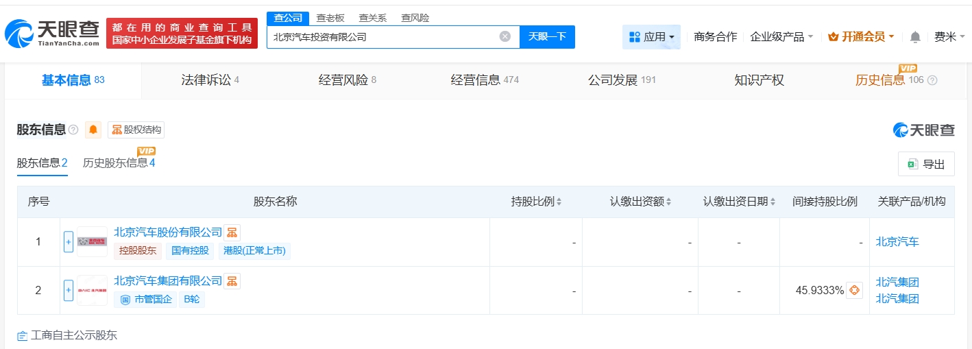 北京汽车投资有限公司成立于2002年6月,法定代表人为宋玮,经营范围包括汽车及相关产业的投资及管理、投资咨询、技术开发、技术咨询、技术服务、信息咨询等。股东信息显示,该公司由北京汽车股份有限公司、北京汽车集团有限公司共同持股。