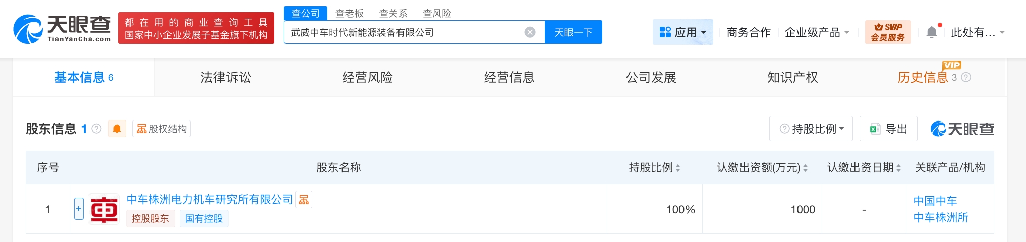 雷达财经讯,天眼查App显示,近日,武威中车时代新能源装备有限公司成立,法定代表人为谷小辉,注册资本1000万人民币,经营范围含特种设备制造、建设工程施工、金属结构制造、金属工具制造、建筑用金属配件制造、通用设备制造、专用设备制造、金属工具销售等,由中国中车旗下中车株洲电力机车研究所有限公司全资持股。