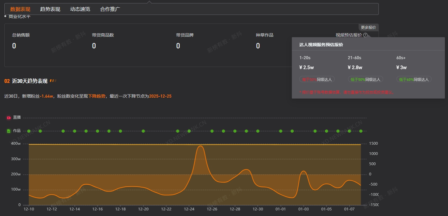 第三方数据显示,狗狗大罗莉视频平台粉丝数为394.6万,过去30日掉粉超1.6万。此外,其1-20s视频广告报价为2.5万元,21-60s视频广告报价为2.8万元,60s以上视频广告报价为3万元。