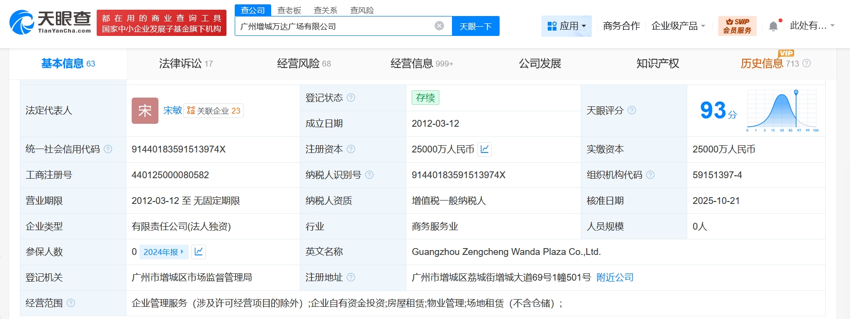 广州增城万达广场有限公司成立于2012年3月,注册资本2.5亿人民币,经营范围为企业管理服务、企业自有资金投资、房屋租赁、物业管理、场地租赁。