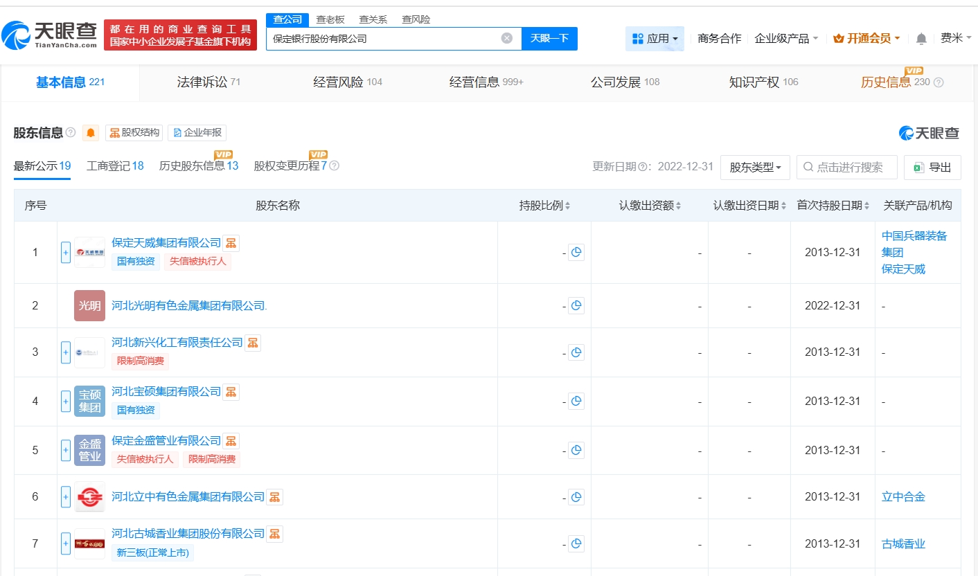 保定银行股份有限公司成立于2002年1月,注册资本59.8亿人民币,经营范围包括吸收公众存款、办理结算业务、办理票据承兑与贴现等。股东信息显示,该公司由保定天威集团有限公司、河北新兴化工有限责任公司、河北宝硕集团有限公司等共同持股。
