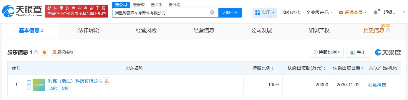 天眼查App显示,近日,诸暨利氪汽车零部件有限公司成立,法定代表人为惠志峰,注册资本2亿,经营范围包括汽车零部件及配件制造、汽车零部件研发、汽车零配件零售等。股东信息显示,该公司由利氪(浙江)科技有限公司全资持股…