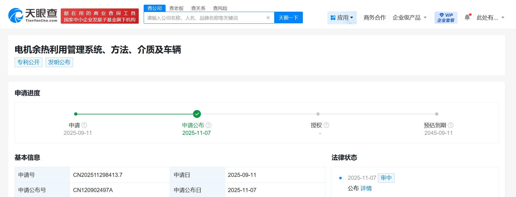 雷达财经讯,天眼查App显示,近日,赛力斯汽车有限公司申请的“电机余热利用管理系统、方法、介质及车辆”专利公布。