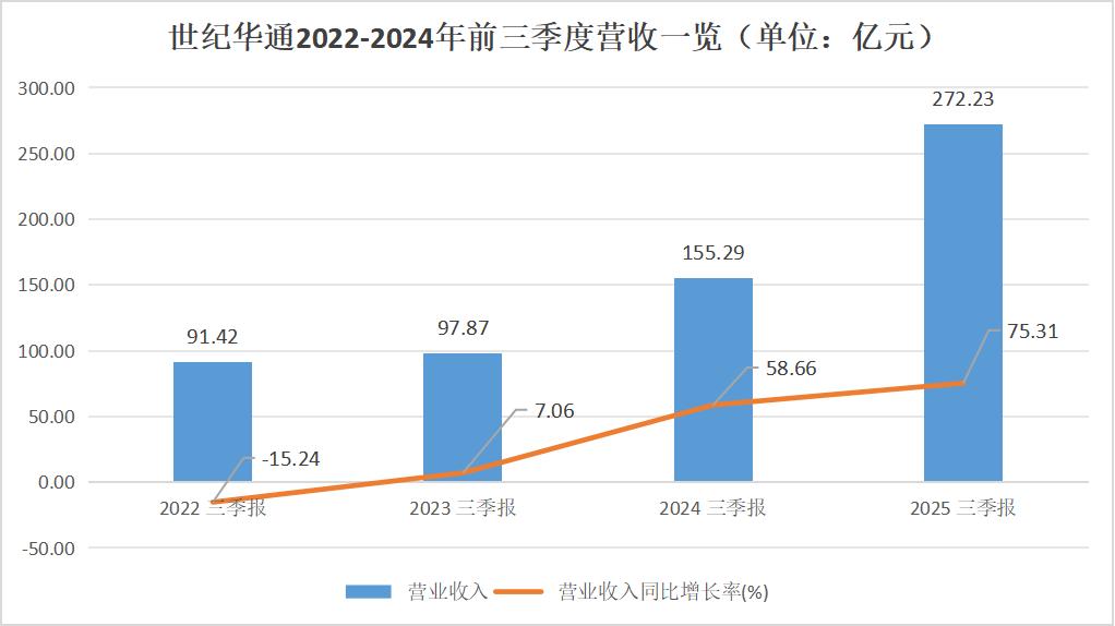 整个前三季度,公司营收达272.23亿元,已超去年全年水平,公司前三季度营收增速为75.31%,创下近年来前三季度营收最高增速。