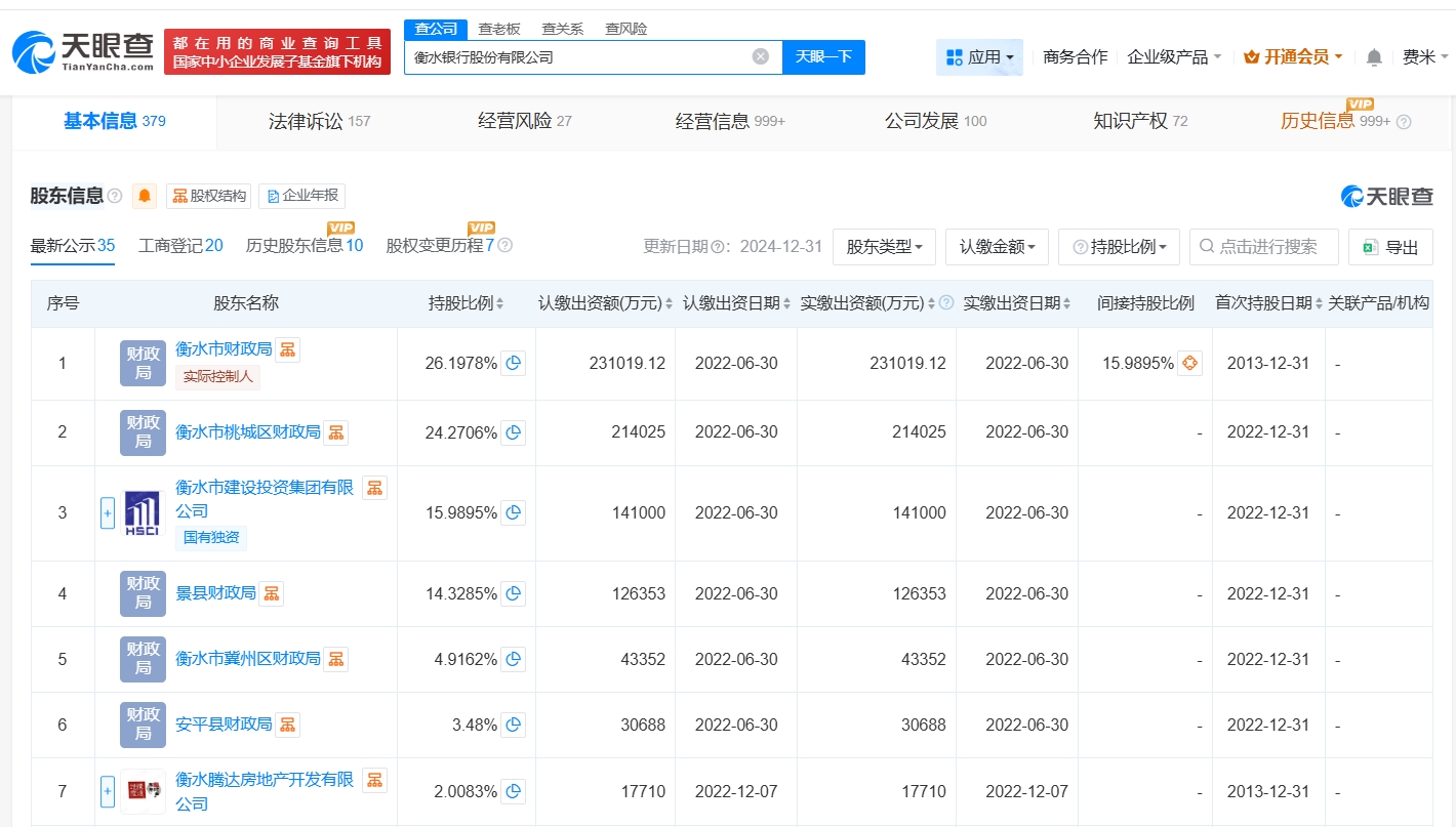 衡水银行股份有限公司成立于2002年5月,法定代表人为郑元昌,经营范围包括吸收公众存款、办理结算业务、办理票据承兑与贴现等。股东信息显示,该公司由衡水市财政局、衡水市桃城区财政局、衡水市建设投资集团有限公司等共同持股。