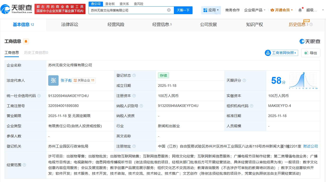 值得注意的是,近期,张雪峰投资成立苏州无咎文化传媒有限公司,注册资本100万人民币,经营范围包括网络文化经营、互联网新闻信息服务、广播电视节目制作经营等。公开资料显示,“无咎”核心语义为“无灾祸、无过失”。