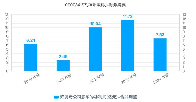 与此同时,神州数码的归母净利润也仿佛坐上过山车一般,分别于2020年至2024年录得6.24亿元、2.49亿元、10.04亿元、11.72亿元、7.53亿元。