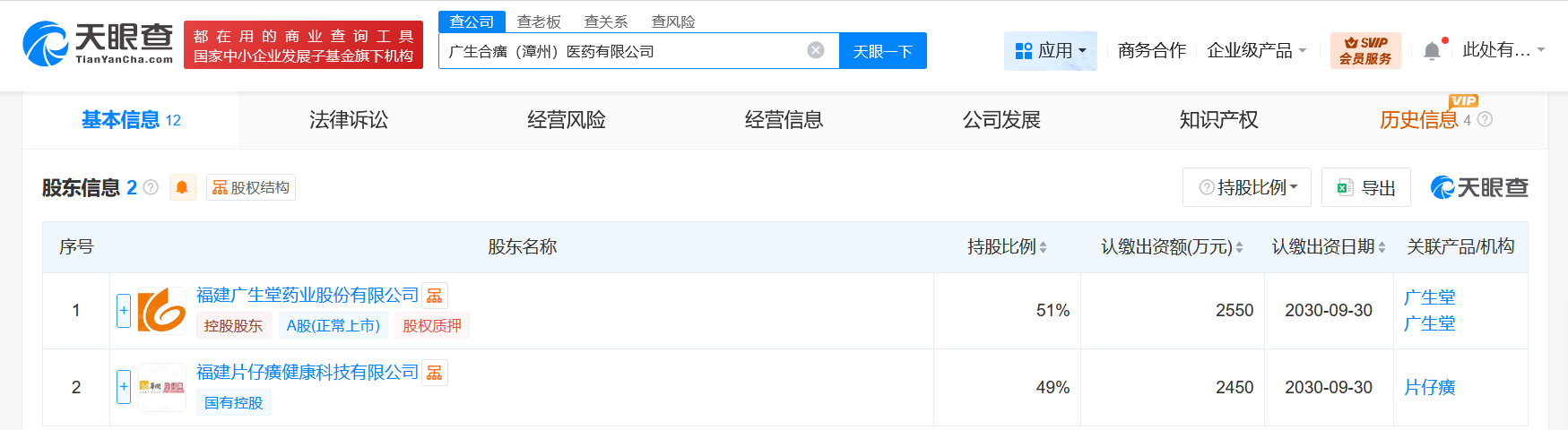 广生堂、片仔癀成立合资医药公司 注册资本5000万