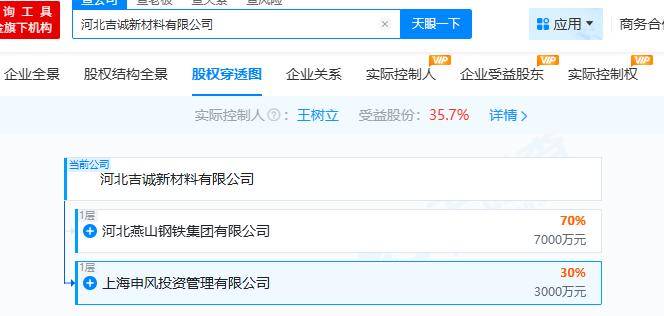 天眼查显示,河北吉诚新材料公司为河北燕钢控股70%的子公司。