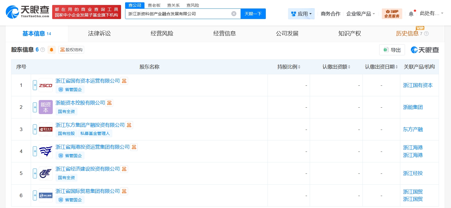 浙江浙资科创产业融合发展公司成立 注册资本40亿