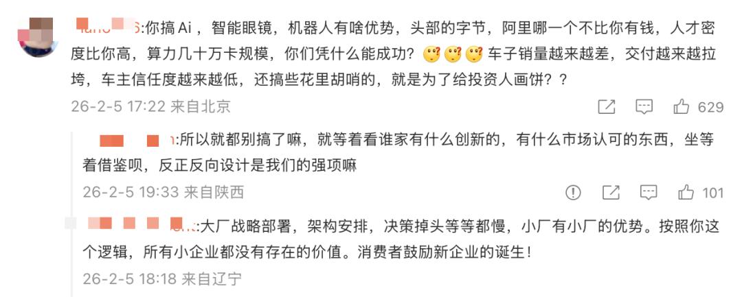 不过,也有网友选择力挺李想,“小厂有小厂的优势”,“消费者鼓励新企业的诞生!”