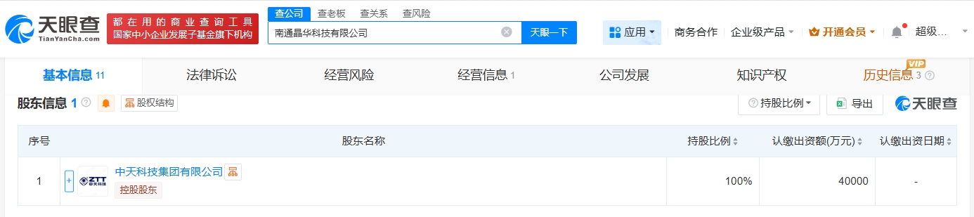雷达财经讯,天眼查App显示,近日,南通晶华科技有限公司成立,法定代表人为曹珊珊,注册资本4亿人民币,经营范围包括光学玻璃制造、光学玻璃销售、功能玻璃和新型光学材料销售等。股东信息显示,该公司由中天科技集团有限公司全资持股。