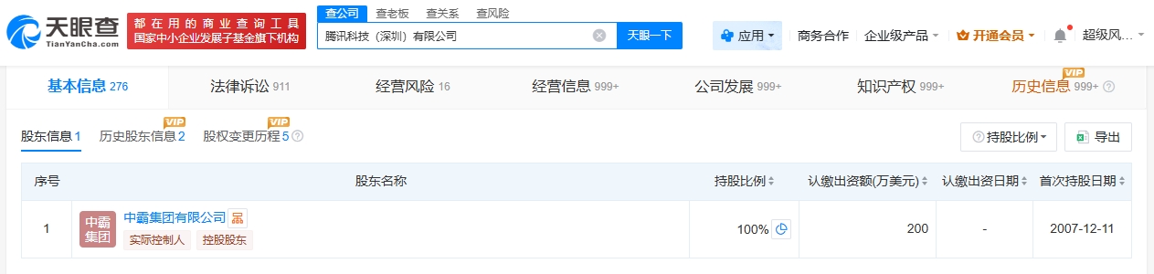 该公司成立于2000年2月,法定代表人为马化腾,注册资本200万美元,经营范围包括从事计算机软硬件的技术开发、销售自行开发的软件等,由中霸集团有限公司全资持股。据悉,2025年为王者荣耀十周年,王者荣耀启用全新品牌LOGO。