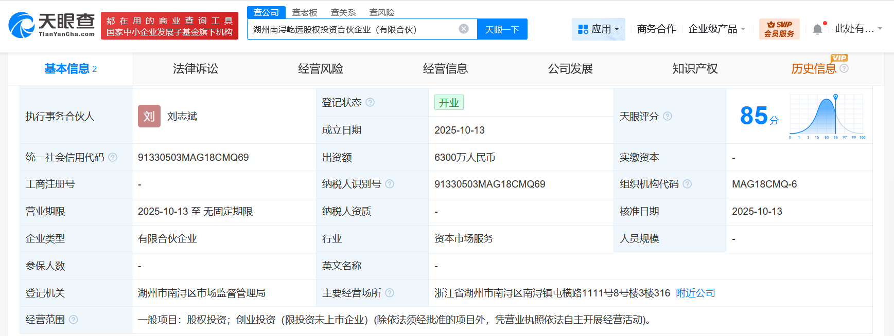 天眼查App显示,近日,湖州南浔屹远股权投资合伙企业(有限合伙)成立,执行事务合伙人为刘志斌,出资额6300万人民币,经营范围为股权投资、创业投资。合伙人信息显示,该合伙企业由上海恒旭创领私募基金管理有限公司、湖州南浔产业振兴母基金股权投资…