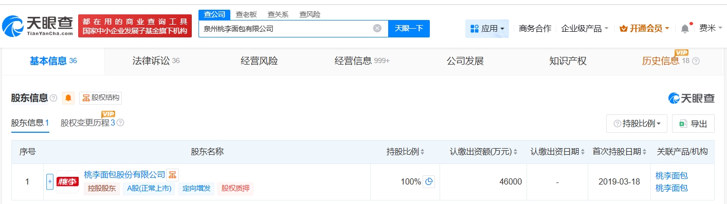 泉州桃李面包有限公司成立于2019年3月,经营范围包括食品经营、食品生产、农副食品加工专用设备销售等。股东信息显示,该公司由桃李面包(603866)全资持股。