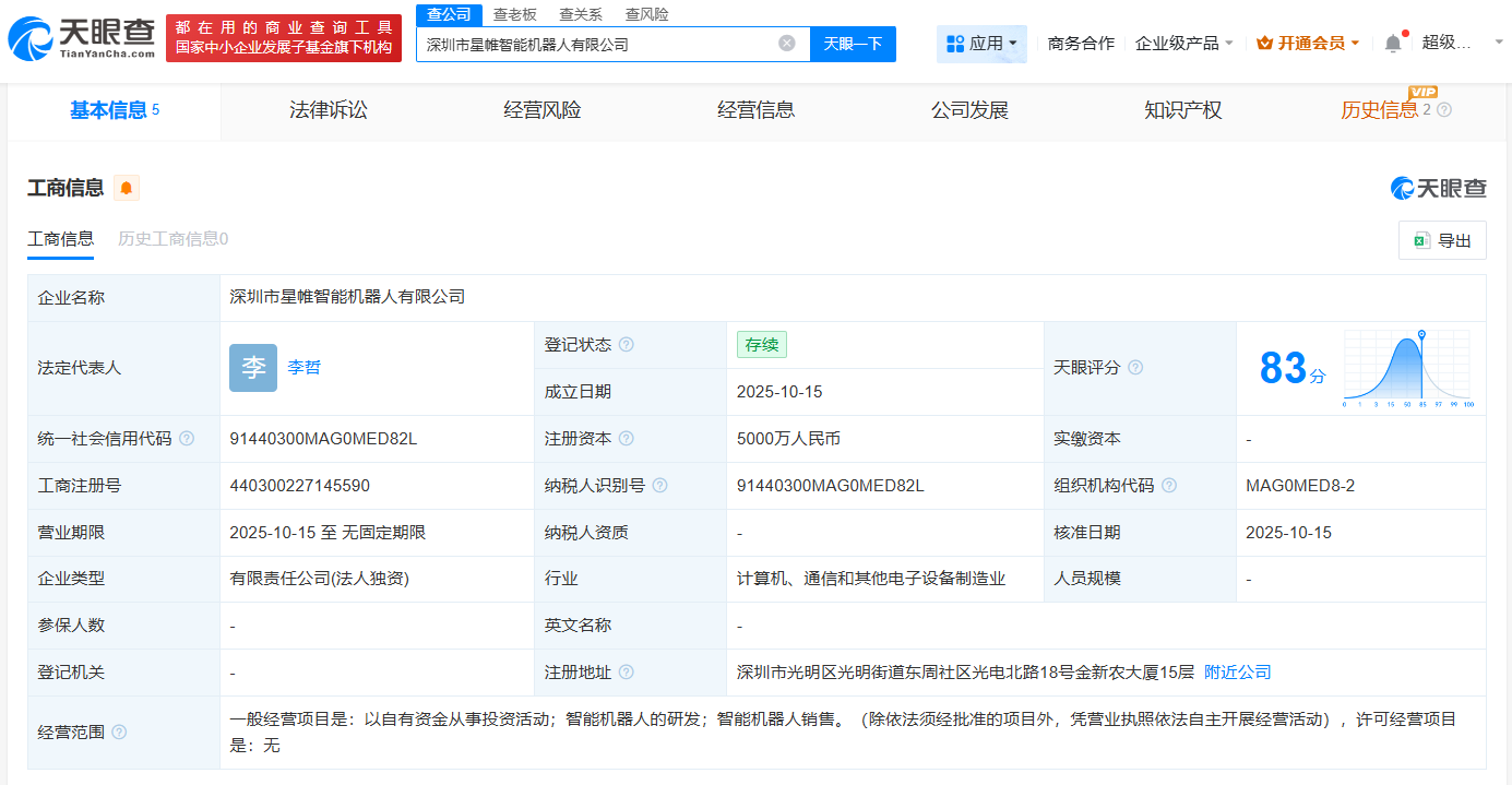 雷达财经讯,天眼查App显示,近日,深圳市星帷智能机器人有限公司成立,法定代表人为李哲,注册资本5000万人民币,经营范围为以自有资金从事投资活动、智能机器人的研发、智能机器人销售。股东信息显示,该公司由金新农(002548)全资持股。