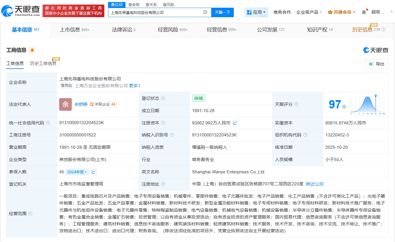 该公司成立于1991年10月,注册资本约9.3亿人民币,经营范围包括集成电路芯片及产品销售、电子专用设备销售、电子元器件批发等,由上海浦东科技投资有限公司、三林万业(上海)企业集团有限公司等共同持股。据报道,近日,该公司成功召开2025年第二次临时股东大会,审议并通过了关于公司更名、治理结构优化及独立董事补选等多项关键议案。