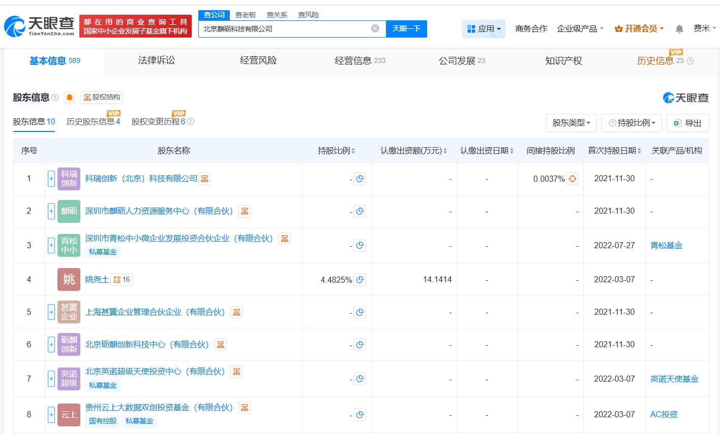 雷达财经讯,天眼查App显示,近日,北京麒砺科技有限公司发生工商变更,新增华为旗下深圳哈勃科技投资合伙企业(有限合伙)为股东,注册资本由约295万人民币增至约315万人民币,同时发生高管变更。