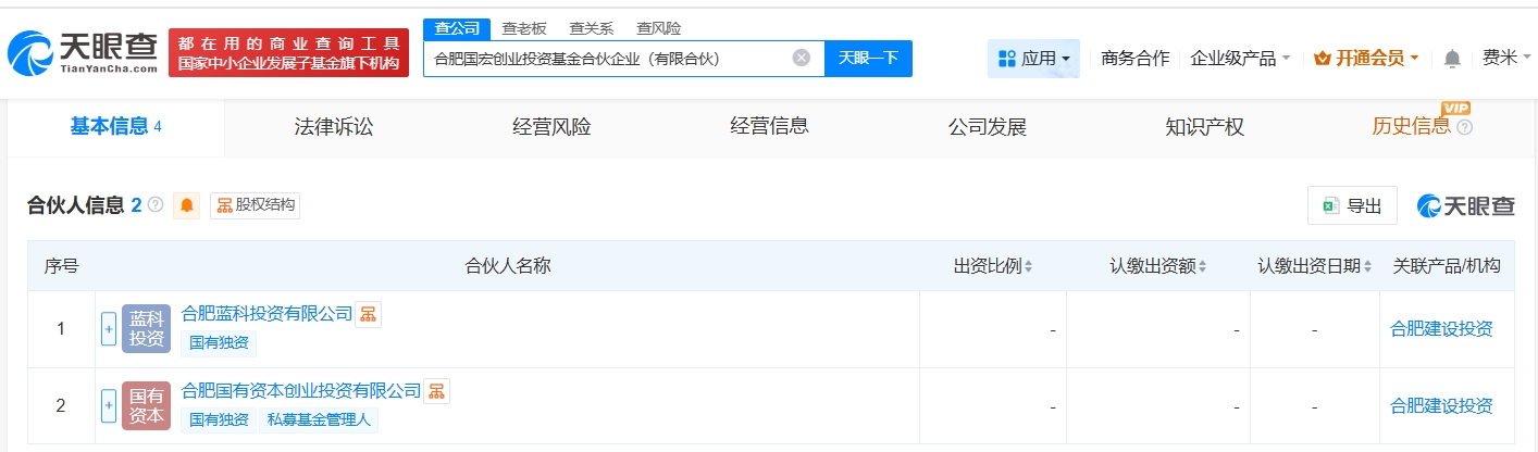 雷达财经讯,天眼查工商信息显示,近日,合肥国宏创业投资基金合伙企业(有限合伙)成立,执行事务合伙人为合肥国有资本创业投资有限公司,出资额10亿人民币,经营范围为私募股权投资基金管理、创业投资基金管理服务。合伙人信息显示,该基金由合肥蓝科投资有限公司、合肥国有资本创业投资有限公司共同出资。