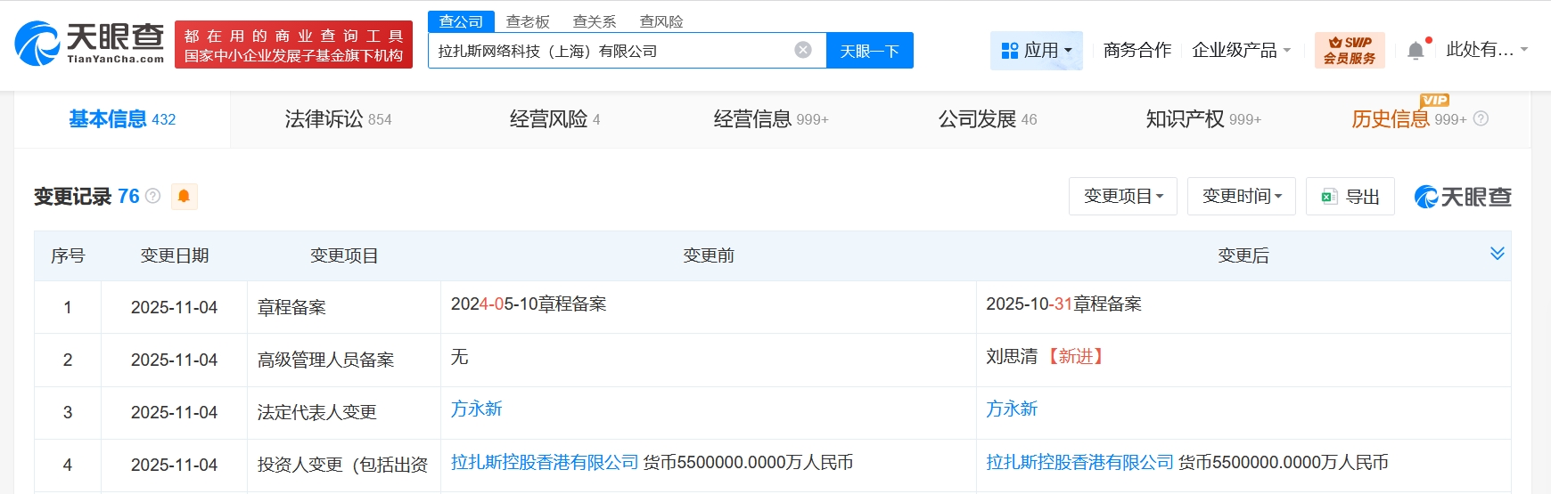 雷达财经讯,天眼查工商信息显示,近日,饿了么关联公司拉扎斯网络科技(上海)有限公司发生工商变更,方永新由执行董事兼总经理变更为董事,新增刘思清为财务负责人。