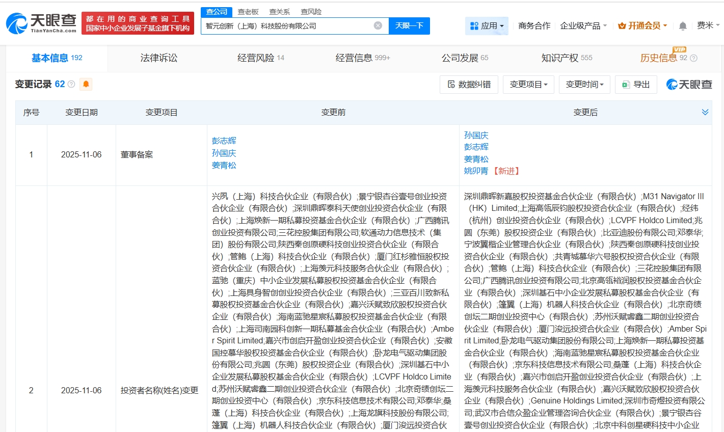 雷达财经讯,天眼查工商信息显示,近日,智元机器人关联公司智元创新(上海)科技有限公司发生工商变更,企业名称变更为智元创新(上海)科技股份有限公司,同时多位主要人员发生变更。
