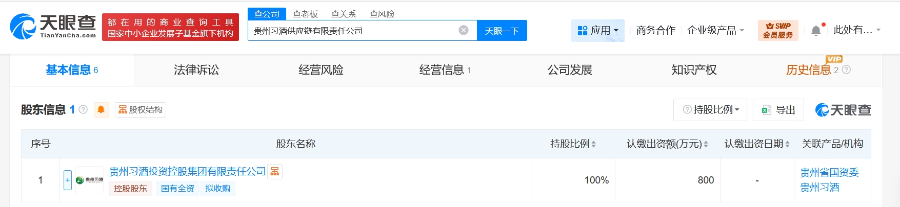 雷达财经讯,天眼查工商信息显示,近日,贵州习酒供应链有限责任公司成立,法定代表人为陈强,注册资本800万人民币,经营范围含农作物种子经营、酒类经营、食品销售、豆及薯类销售、谷物销售、食用农产品批发、食用农产品零售、农副产品销售、互联网销售等。股东信息显示,该公司由贵州习酒投资控股集团有限责任公司全资持股。