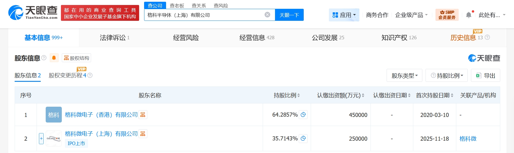 雷达财经讯,天眼查工商信息显示,近日,格科半导体(上海)有限公司发生工商变更,新增格科微电子(上海)有限公司为股东,同时,注册资本由45亿人民币增至70亿人民币,增幅约56%。