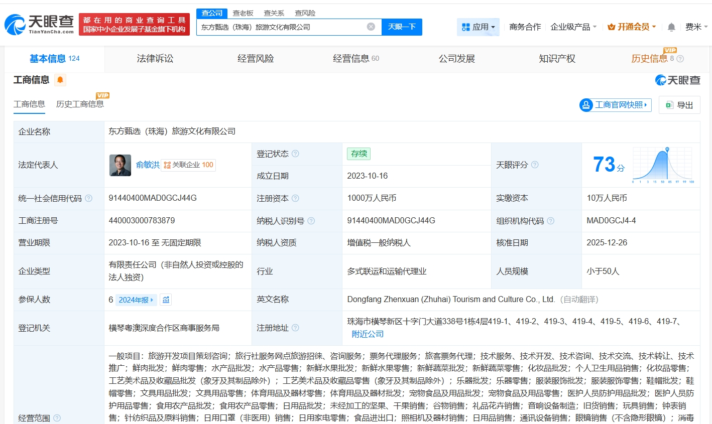 该公司成立于2023年10月,注册资本1000万人民币,经营范围含旅游开发项目策划咨询、票务代理服务、旅客票务代理等,由北京新东方迅程网络科技有限公司全资持股。值得一提的是,此前,孙东旭已卸任东方甄选(北京)科技有限公司、北京德信东方网络科技有限公司、北京新远方人力资源服务有限公司职务。