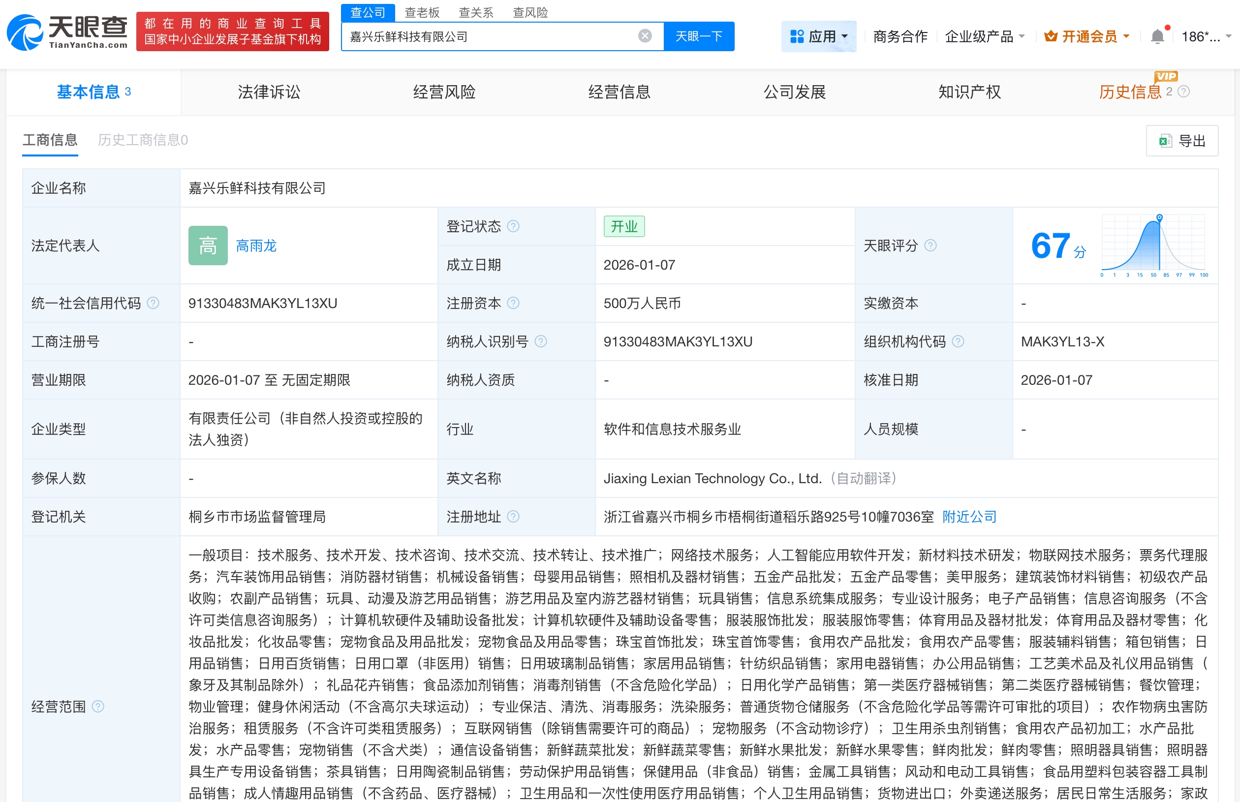 雷达财经讯,天眼查工商信息显示,近日,嘉兴乐鲜科技有限公司成立,法定代表人为高雨龙,注册资本500万人民币,经营范围含网络技术服务、人工智能应用软件开发、新材料技术研发、物联网技术服务、票务代理服务、信息系统集成服务等。股东信息显示,该公司由美团旗下浙江乐鲜科技有限公司全资持股。