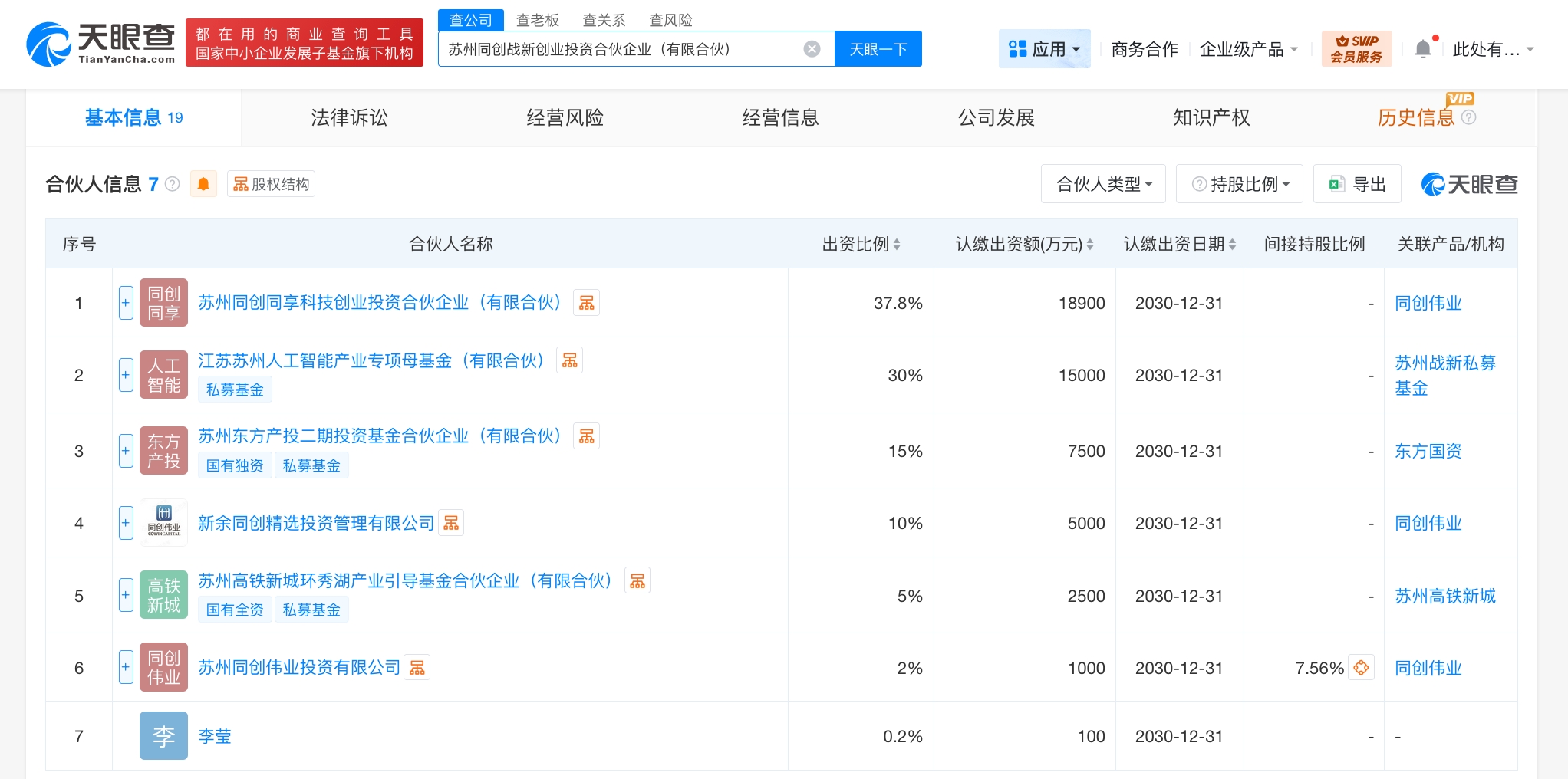 雷达财经讯,天眼查工商信息显示,3月6日,苏州同创战新创业投资合伙企业(有限合伙)成立,执行事务合伙人为苏州同创伟业投资有限公司,出资额5亿人民币,经营范围为创业投资。合伙人信息显示,该基金由苏州同创同享科技创业投资合伙企业(有限合伙)、江苏苏州人工智能产业专项母基金(有限合伙)、苏州东方产投二期投资基金合伙企业(有限合伙)等共同出资。