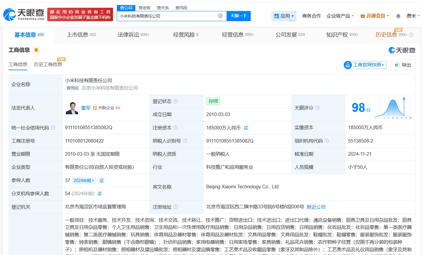 雷达财经讯,天眼查知识产权信息显示,近日,小米科技有限责任公司登记“Xiaomi MiMo标识设计”作品著作权,作品类别为美术。此前,该公司已申请注册多枚“XIAOMI MIMO”商标。 小米科技有限责任公司成立于2010年3月,法定代表人为雷军,注册资本18.5亿人民币,经营范围包括通讯设备销售、厨具卫具及日用杂品批发、厨具卫具及日用杂品零售等。股东信息显示,该公司由雷军、黎万强、洪锋、刘德共同持股。据媒体报道,此前,小米正式发布并开源了全新基础语言模型MiMo-V2-Flash,引发多方关注。