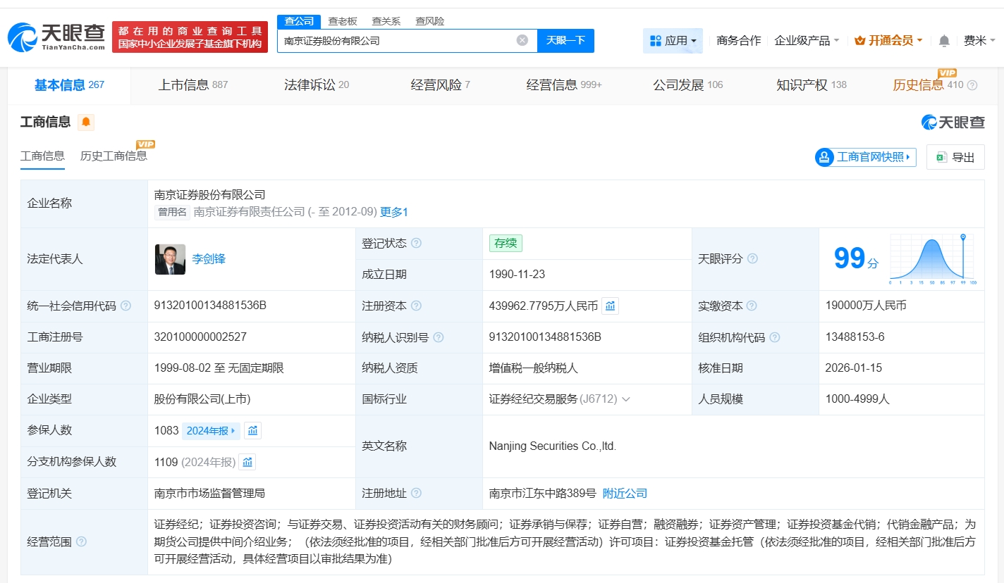 雷达财经 文|冯秀语 编|李亦辉 1月14日,中信证券(600030)发布2025年业绩快报公告,报告期实现营业收入748.3亿元,同比增长28.75%,归属上市公司股东的净利润300.51亿元,同比增长38.46%,扣除非经常性损益后的归属于上市公司股东的净利润302.87亿元,同比增长40.44%,基本每股收益1.96元,同比增长39.01%。 天眼查资料显示,中信证券成立于1995年10月25日,注册资本1482054.6829万人民币,法定代表人张佑君,注册地址为广东省深圳市福田区中心三路8号卓越时代广场(二期)北座。主营业务为投资银行、财富管理、资产管理、金融市场等相关金融服务。 目前,公司董事长为张佑君,董秘为王俊锋,员工人数为26083人。 公司参股公司99家,包括中信证券国际有限公司、中信证券资产管理有限公司、CSI Global Markets Holdings Limited、SetClear Pte.Ltd.、CLSA Americas Holdings,Inc.等。 在业绩方面,公司2022年、2023年和2024年营业收入分别为651.09亿元、600.68亿元和637.89亿元,同比分别增长-14.92%、-7.74%和6.20%。归母净利润分别为213.17亿元、197.21亿元和217.04亿元,归母净利润同比增长分别为-7.72%、-7.49%和10.06%。同期,公司资产负债率分别为80.25%、81.13%和82.54%。
