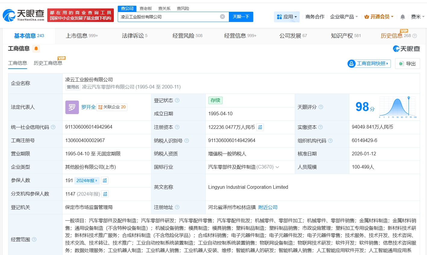 雷达财经 文|冯秀语 编|李亦辉 1月15日,中机认检(301508)发布2025年业绩快报,报告期实现营业收入8.79亿元,同比增长5.82%,归属上市公司股东的净利润1.52亿元,同比增长14.71%,扣除非经常性损益后的归属于上市公司股东的净利润1.37亿元,同比增长17.30%,基本每股收益0.6719元,同比增长14.70%。 天眼查资料显示,中机认检成立于2003年11月28日,注册资本22608.52万人民币,法定代表人付志坚,注册地址为北京市大兴区北臧村镇天荣街32号。主营业务为汽车整车、军用装备、工程机械、特种设备、民航地面设备、零部件等产品检验检测服务,以及产品认证、体系认证和服务认证等认证服务。 目前,公司董事长为付志坚,董秘为魏永斌,员工人数为690人,实际控制人为国务院国有资产监督管理委员会。 公司参股公司8家,包括中机科(北京)车辆检测工程研究院有限公司、中汽认证中心有限公司、中联认证中心(北京)有限公司、中机寰宇(山东)车辆认证检测有限公司、中机博也(宁波)汽车技术有限公司等。 在业绩方面,公司2022年、2023年和2024年营业收入分别为6.38亿元、7.54亿元和8.31亿元,同比分别增长19.05%、18.19%和10.26%。归母净利润分别为1.17亿元、1.39亿元和1.32亿元,归母净利润同比增长分别为14.93%、18.89%和-5.00%。同期,公司资产负债率分别为30.88%、36.49%和15.46%。 在风险方面,天眼查信息显示,公司自身天眼风险0条,周边天眼风险52条,历史天眼风险2条,预警提醒天眼风险129条。