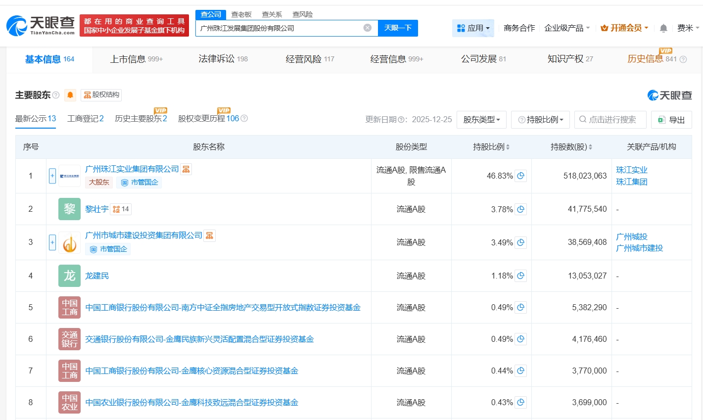 该公司成立于1992年12月,法定代表人为李超佐,经营范围包括土地使用权租赁、住房租赁、非居住房地产租赁、物业管理等,由广州珠江实业集团有限公司、黎壮宇、广州市城市建设投资集团有限公司等共同持股。