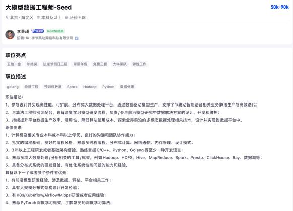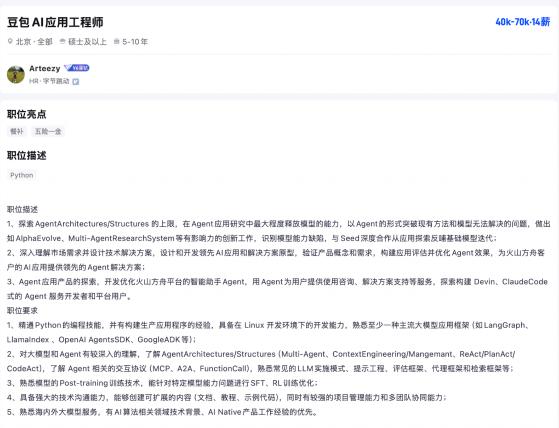 而字节跳动提供的薪资待遇,同样令不少人羡慕。招聘软件显示,字节跳动给予“豆包AI应用工程师”的月薪最高可达7万元,而“Seed大模型数据工程师”最多可拿到9万/月的薪酬。